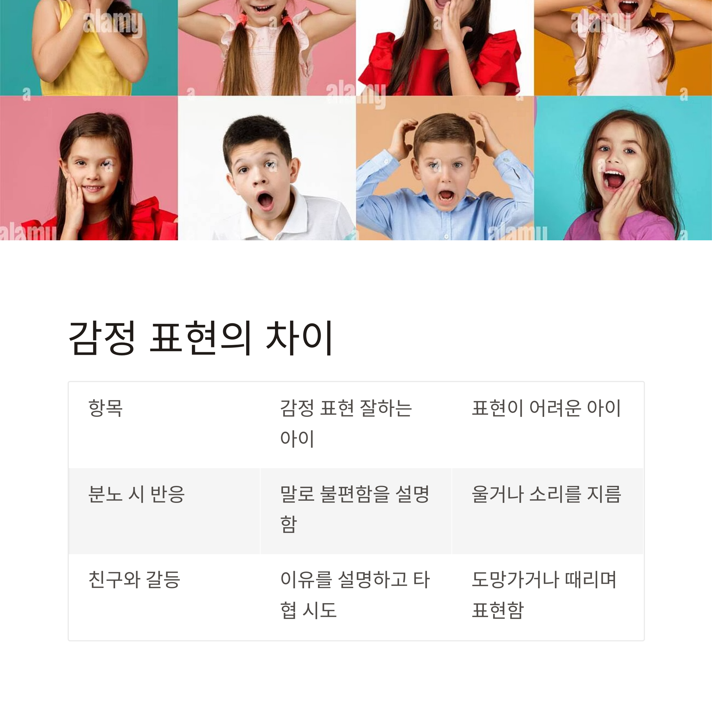 항목 감정 표현 잘하는 아이 표현이 어려운 아이