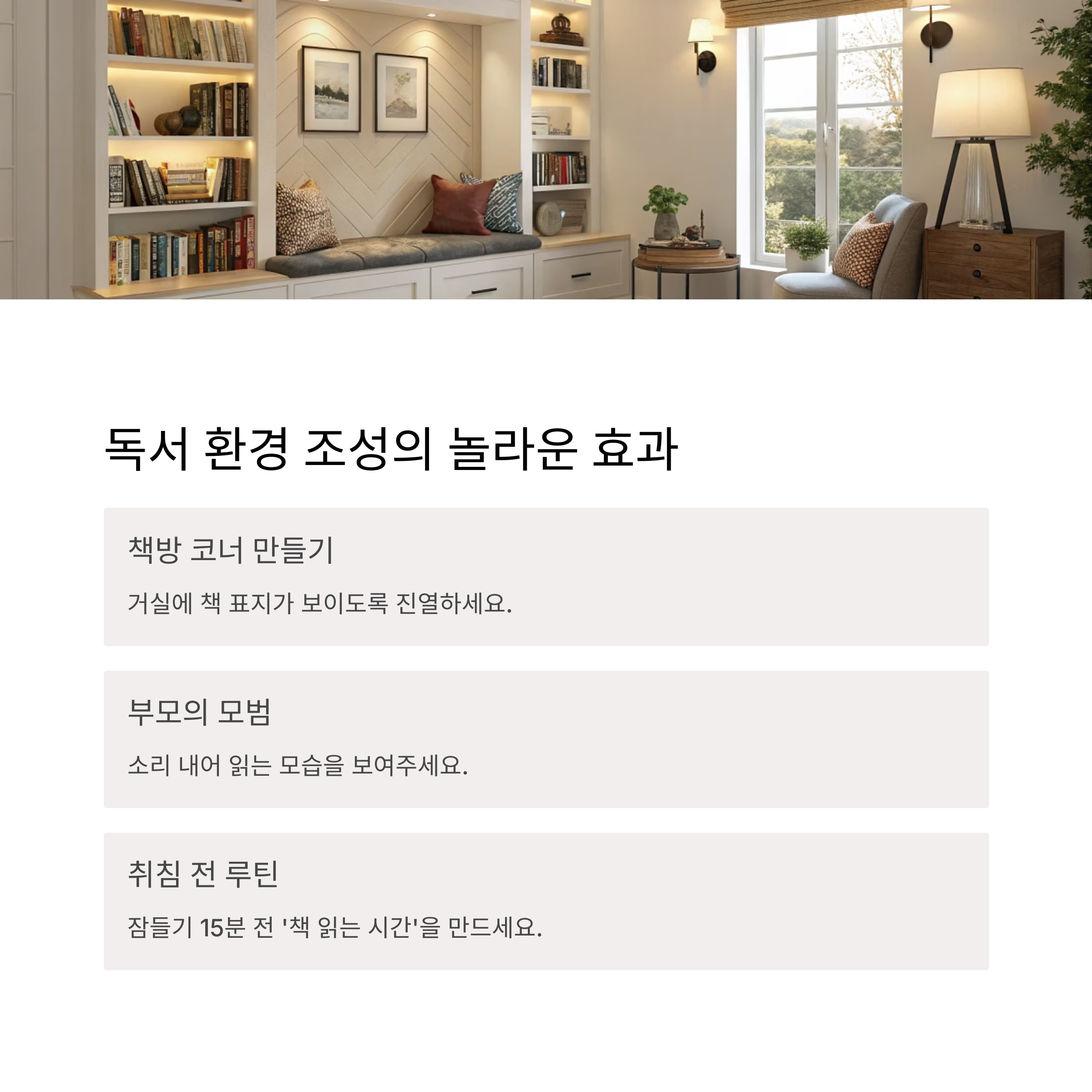 이 루틴을 통해 독서는 공부가 아닌 가족과의 소통 도구로 인식되기 시작했고,